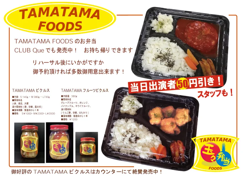 東京・下北沢にある音楽レーベル兼プロダクションの株式会社ユーケープロジェクトが運営するライブハウス「下北沢CLUB Que」が、特製弁当と特製ピクルスの販売を開始したことをお知らせいたします。