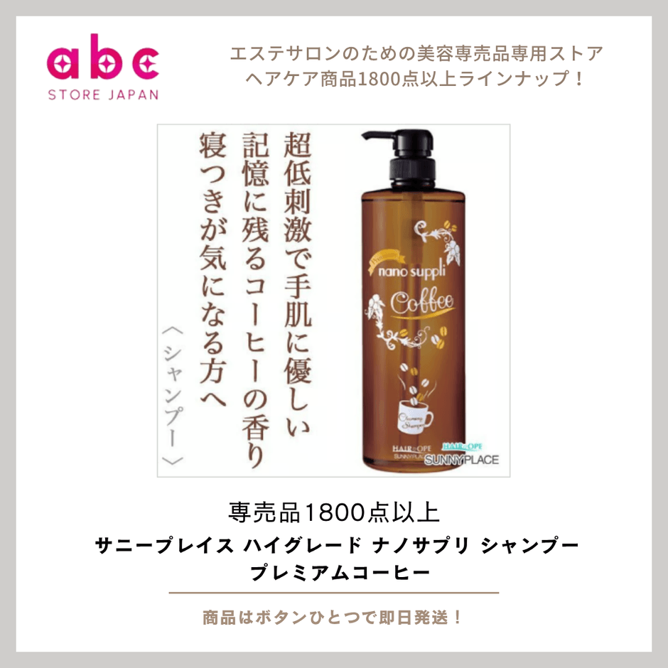 「サニープレイス ハイグレード ナノサプリ シャンプー プレミアムコーヒー」は、ほのかに香る上質なコーヒーの香りが魅力のサロン品質シャンプーです。