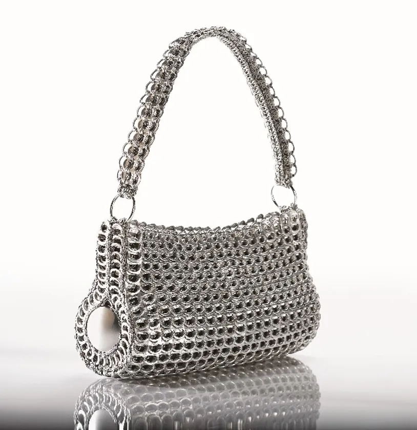 リサイクルされたプルタブを編み合わせて作られるバッグ