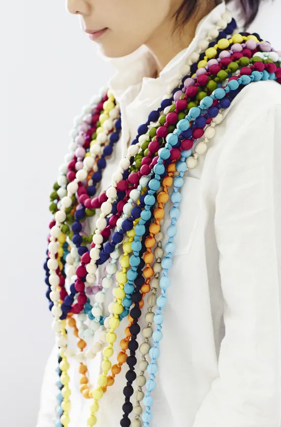 ベトナムの伝統織物シルクを用いて作られているネックレス。ベトナムの農村部では昔ながらの農業に頼る生活のため、収入を得る手段が限られていることが課題だが、ネックレスを作ることで収入の向上につながっている。