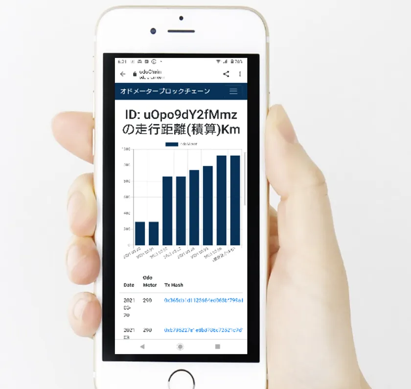 ブロックチェーン上に書き込まれた走行距離記録はその仕組み上、改ざんが不可能であり、車検制度が未整備な国に対して画期的なサービスとなります。