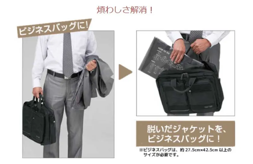 旅行や出張時に大きなガーメントケースとキャリーケース、夏場等に脱いだジャケットを腕に持たれている方々がおられますが、「SU-PACK」ならキャリーケースやビジネスバッグに収納できる優れた機能性で選ばれています。