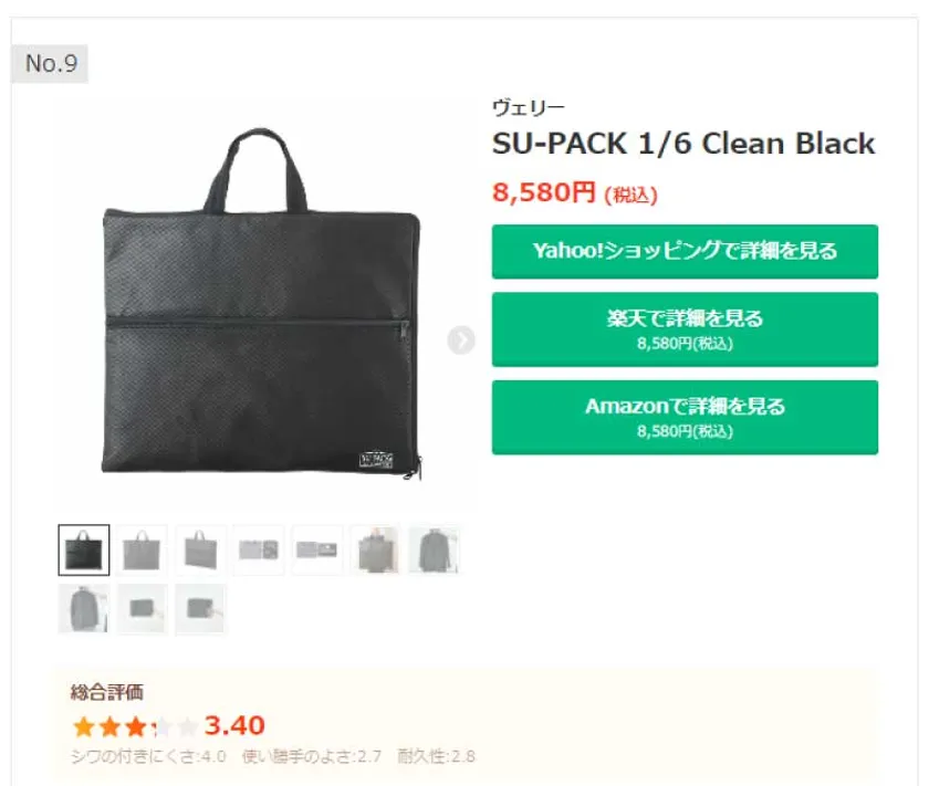 販売年数、販売数が増加するとともに、口コミ件数も増加し、ご購入者様からの口コミには、きっちりした使用感を書き込んでいただき、問題点も多少ありますが、総合的に高評価をいただいております。ガーメントケースのおすすめサイトでも上位に複数の商品が選ばれています。