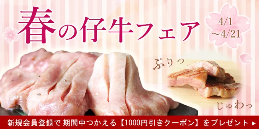 仙台で牛タン加工食品の製造・販売、牛タンレストランの運営を手がける株式会社陣中(本社所在地:宮城県仙台市、代表取締役:福山 良爾)のオンラインショップでは、『春の仔牛フェア』を2021年4月1日(木)より開催いたします。