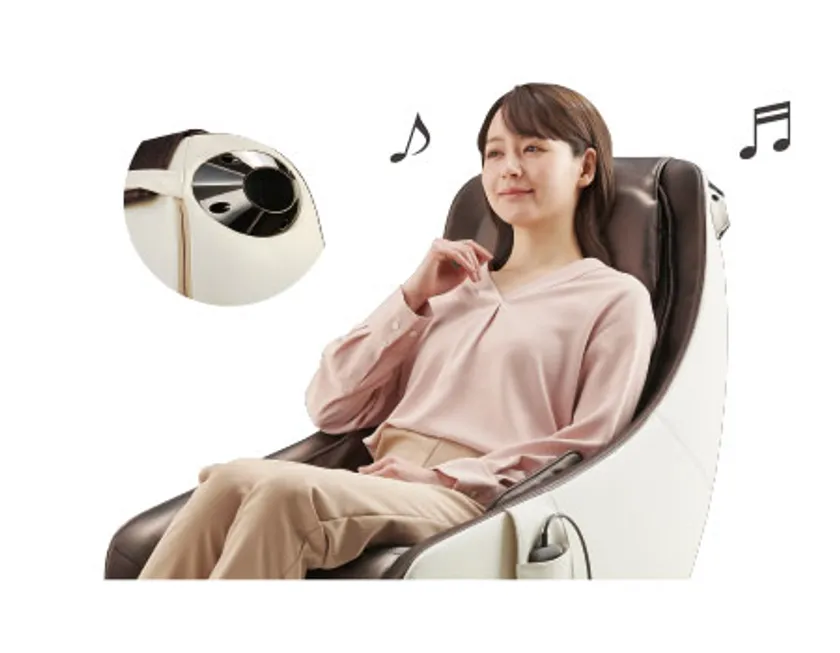 Bluetooth(R)対応スピーカーを搭載しており、お手持ちのスマートフォンやパソコンなどと接続し、音楽を聴きながらマッサージを受けることができます。スピーカーのみで使用することができるので、マッサージをしていない時も音楽を楽しむことができます。