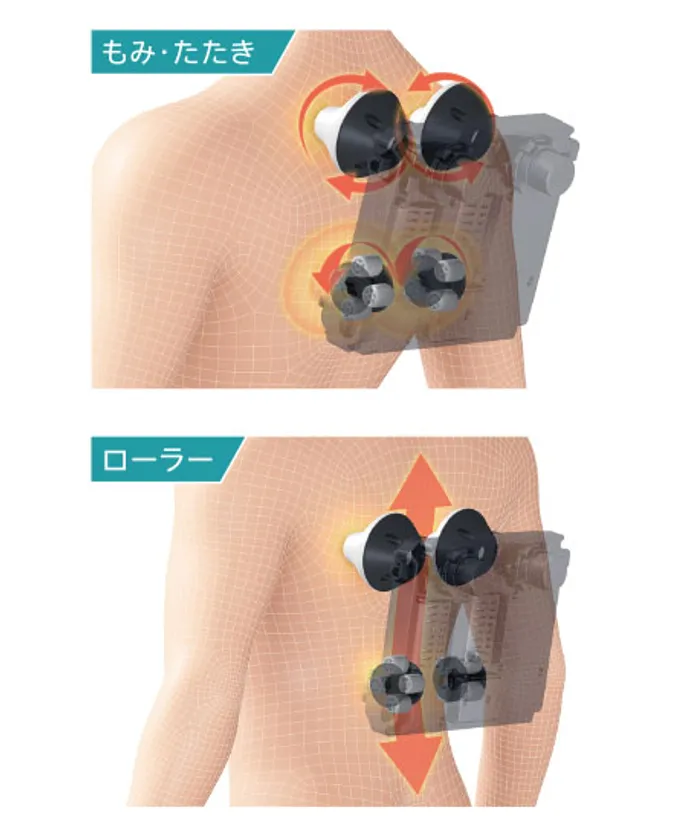 「もみ・たたき」と「ローラー」の2種類のもみ技から選択可能