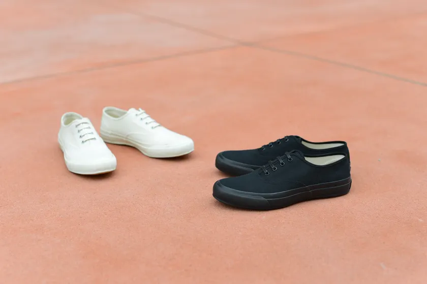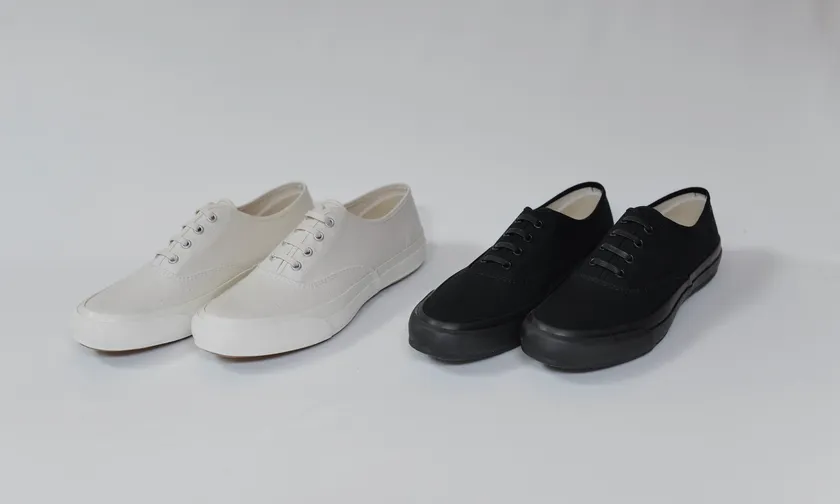 カラーは服装にあわせやすい定番のブラックモノとナチュラル(生成り)の2色展開。また、通常の製品よりも目の細かいキャンバス生地を採用することで、柔かく包み込むような履き心地と見た目の上品さも演出。細部まで修正を加え、より削ぎ落とされたデザインが復刻として誕生します。