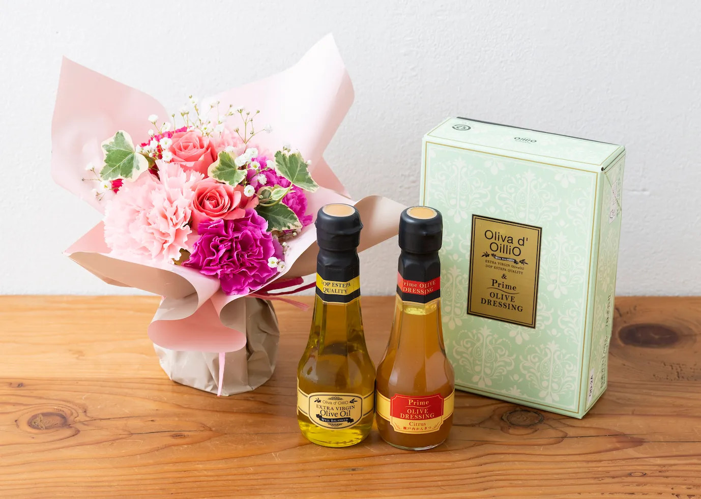 ◆日清オイリオ「オリーブオイルギフト」とスタンディングブーケのセット