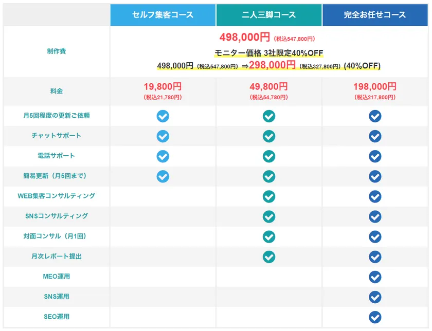 3プラン一律 498,000円(税込547,800円)