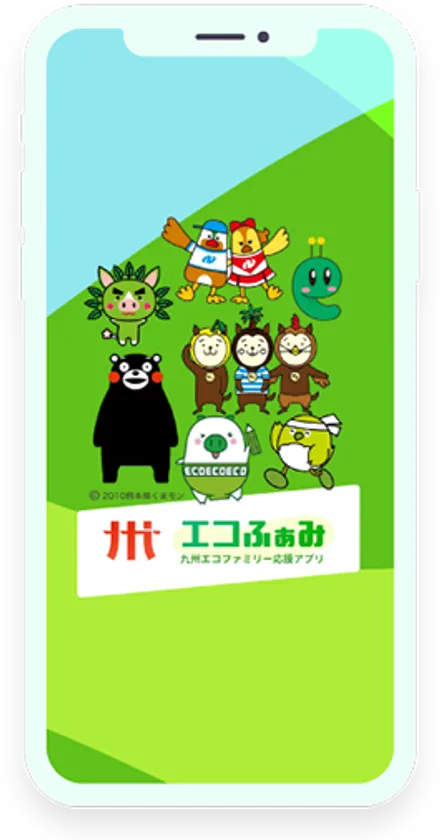 「九州エコファミリー応援アプリ(エコふぁみ)」は、省エネ・省資源など地球環境にやさしい活動に取り組む県民(エコファミリー)の皆様を支援する九州7県(福岡県・佐賀県・長崎県・大分県・熊本県・宮崎県・鹿児島県)公式の環境アプリです。九州7県のキャラクターたちと一緒に、地球環境にやさしい活動に取り組んでポイントを貯めることができ、そのポイントを使って参加できる抽選で、素敵なプレゼントが当たります。