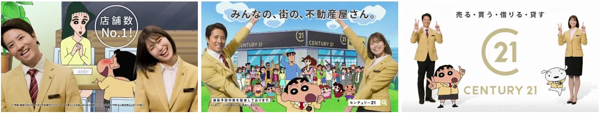 株式会社センチュリー21・ジャパン(本社:東京都港区 代表取締役社長:園田 陽一)は、現イメージキャラクターのケイン・コスギさんに加え、新たなイメージキャラクター2代目“センチュリー21ガール”として稲村亜美さんを、”応援隊長“としてクレヨンしんちゃんでおなじみの野原しんのすけを起用いたします。それを記念し、CM 「C21の歌」篇と「どこでも出現」篇を、2021年4月1日(木)より全国で順次公開いたします。Web上ではメイキング動画も公開いたします。
