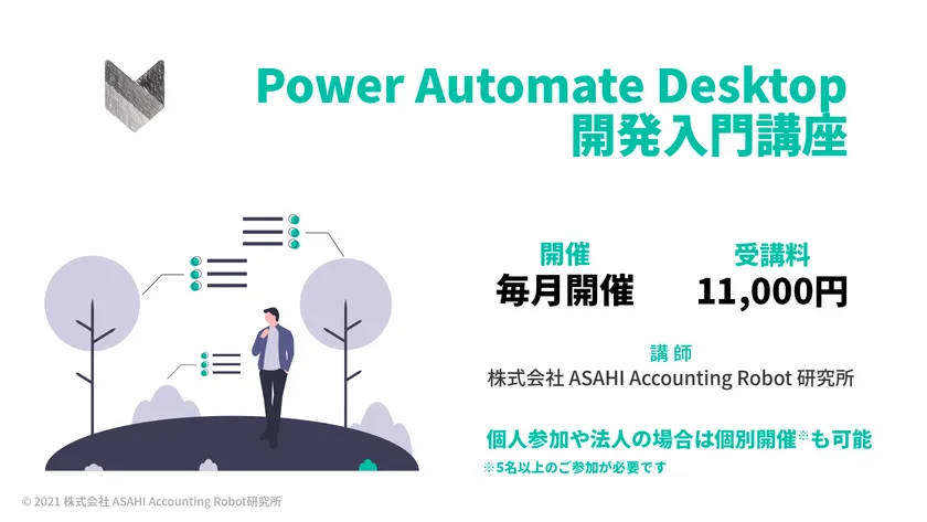 株式会社ASAHI Accounting Robot 研究所(所在地:山形県山形市、代表取締役:田牧 大祐、以下 ロボ研)は、Microsoft社が提供するRPAツール「Power Automate Desktop」に関するハンズオン学習サービス「Power Automate Desktop オンライン開発入門講座」の申し込みを、2021年4月6日より開始いたします。