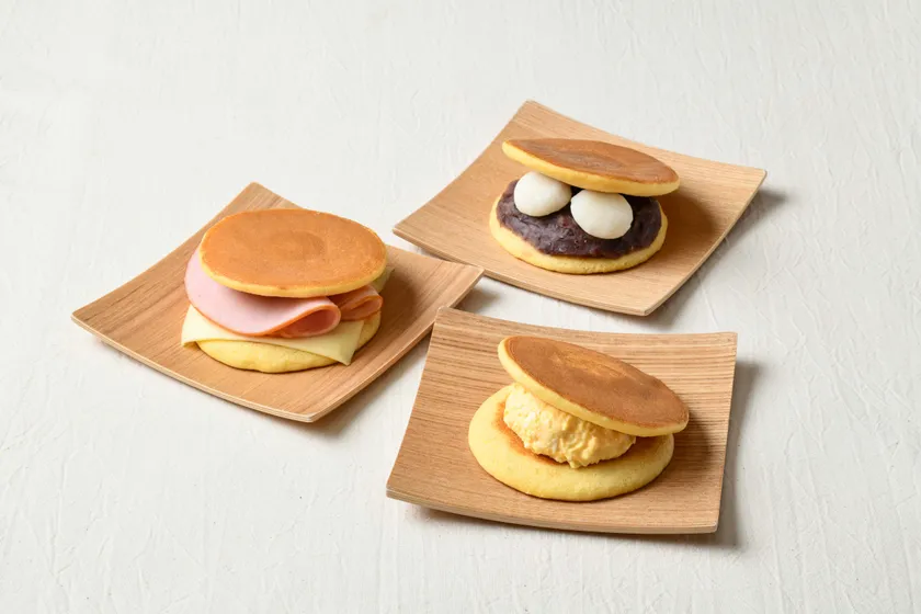 人気の日本橋どらやきに「Nihonbashi E-Chaya」限定の味が登場。北海道産小麦を使用した生地に、バラエティ豊かな具材をはさみました。ハムチーズやたまごサラダの“デリ風どらやき”や“あんこもち入どらやき”など3種の味をお楽しみいただけます。