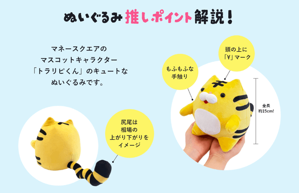 【マネースクエア】口座開設+エントリーでもれなく全員プレゼント!マネースクエアマスコットキャラクター「トラリピくん」のぬいぐるみ