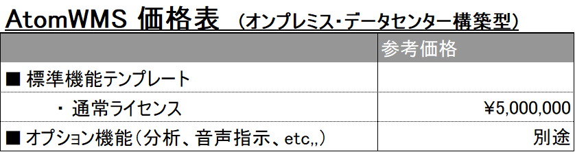 ※クラウド版Atom WMSのライセンス価格については別途お問い合わせください。