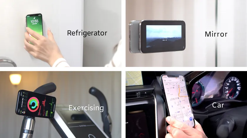 さらに、同梱の「アタッチメント」を使えば、鏡・壁・タイルなどにもアタッチが可能です。