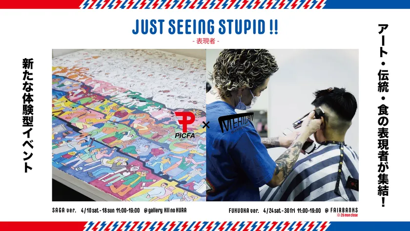 佐賀の福祉施設と福岡の理髪店が共同で企画 アート・伝統・食の表現者が集結する 新たな体験型アートイベント 『JUST SEEING STUPID!! -表現者-』の クラウドファンディングを開始