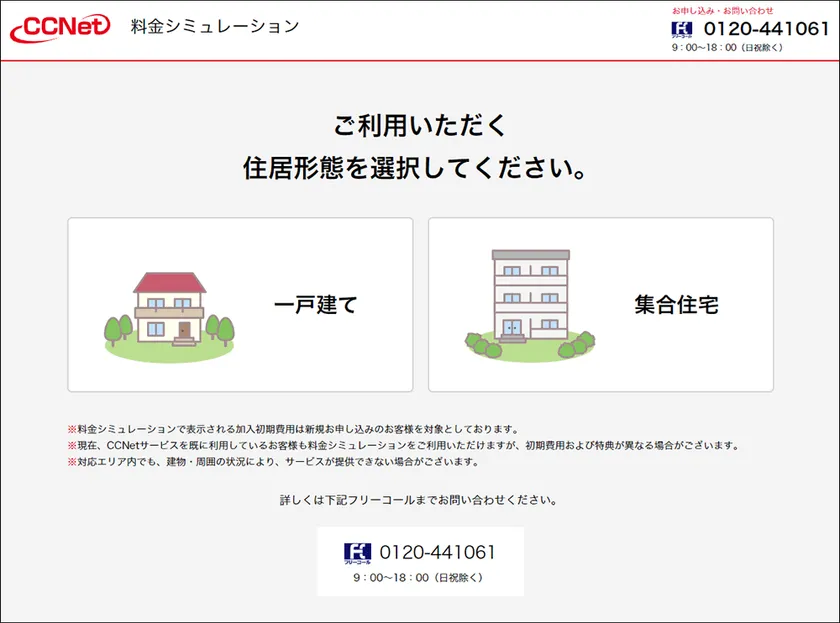 CCNet Web完結申込フォーム(住居選択画面)