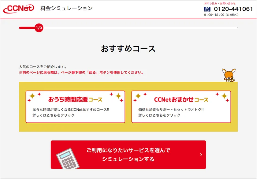 CCNet Web完結申込フォーム(サービス選択画面)