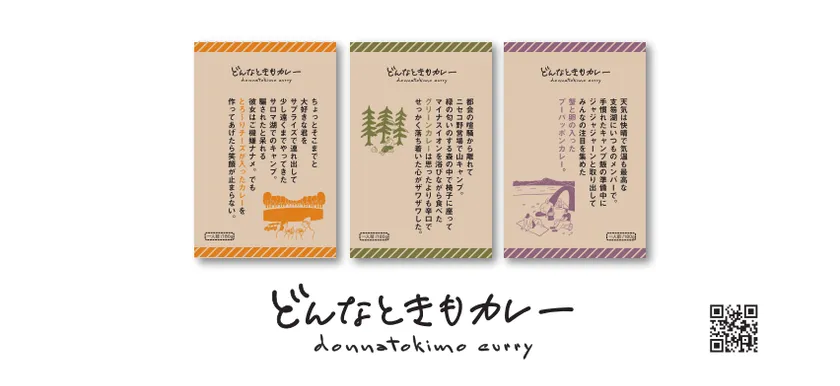 「どんなときもカレー」は世の中には色々なカレーがあるけれど、「真夏の暑い日も、雪の寒い日も。」「楽しい時も、そうでない時も。」、「キャンプで食べるカレーは、どんなときも美味しい。」というコンセプトから作りました。