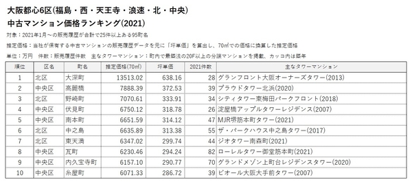 ■大阪都心6区 中古マンション価格ランキング(2021)