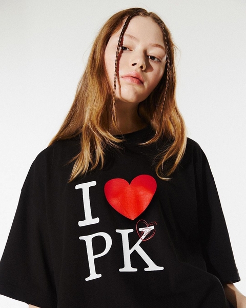 CASUAL FREIDAYの大胆なグラフィックを配したメッシュ素材のTシャツ、I ♡ PKプリントのTシャツは、クロップド丈とリラックスフィットの2サイズで展開。