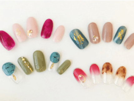 デザインだけでなくベースカラーも豊富に取り揃えており、好みのものを見つけやすいですよ。ネイルが初めてという方やデザインに迷ってしまう方は、スタッフさんに相談してみてくださいね。