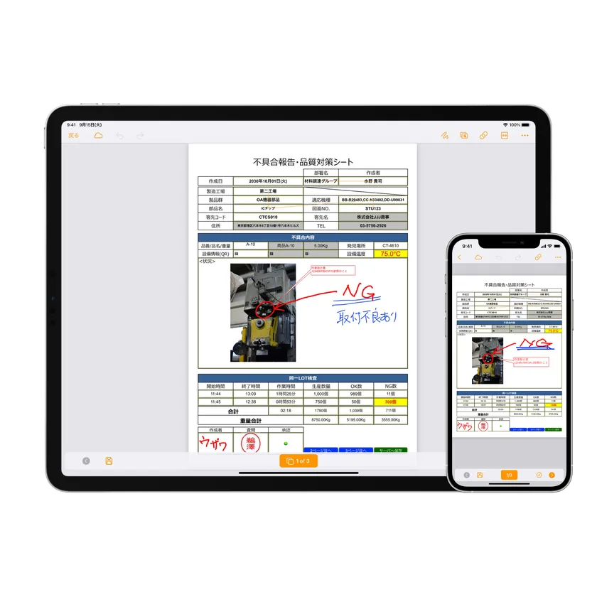 ・紙やExcelの帳票をそのままのレイアウトでタブレットに取り込み、ペーパーレス化を実現