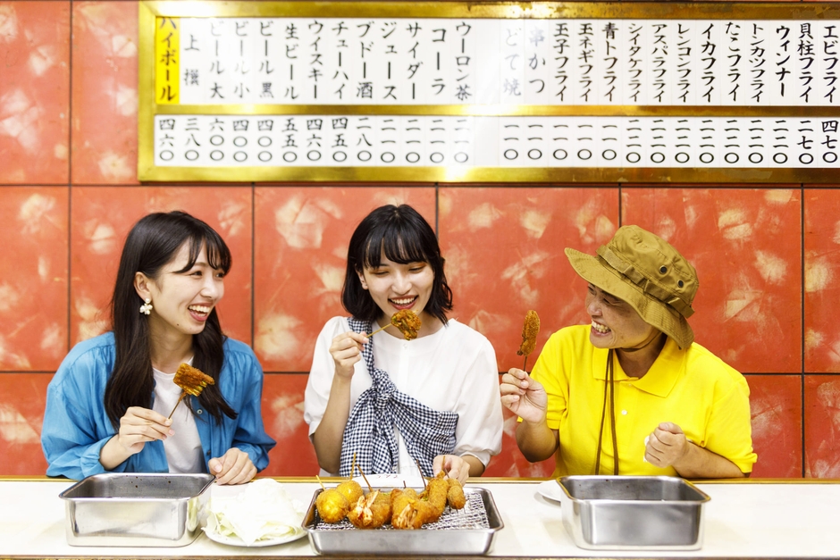 新世界を代表するB級グルメ串カツ屋を巡るツアー。OMOレンジャーが全ての店を同伴し、串カツの食べ方や注文方法、店主とのしゃべくりをサポートします。