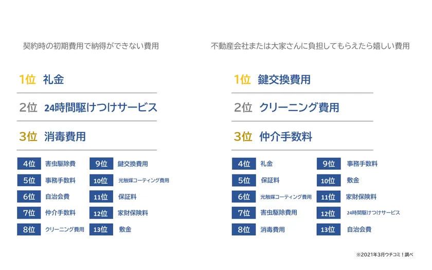 [左]契約時の初期費用で納得ができない費用 [右]不動産会社または大家さんに負担してもらえたら嬉しい費用