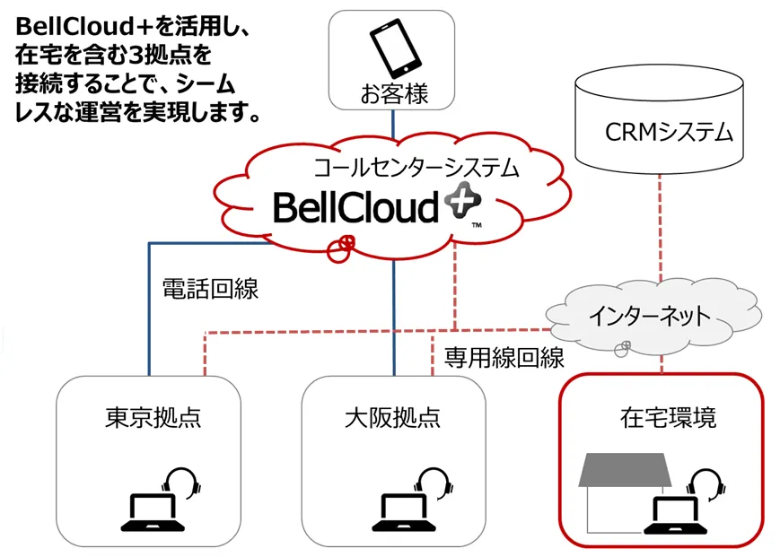 「BellCloud+」は、サーバー構築やデータセンター等を必要とせず、小規模から大規模まで、期間を問わず利用することが可能なクラウド型のコンタクトセンタープラットフォームです。多様化する顧客接点への対応に向けて、音声基盤としての機能に加え、チャットやWEBなどのデジタルチャネルを活用した自動応答によるコンタクトセンターの無人化対応、消費者やオペレータの感情解析など、次世代コンタクトセンターの実現に向けた最新のテクノロジーを搭載しています。「BellCloud+」が有する、繁閑に応じて柔軟にコンタクトセンターの規模の変動が可能なシステム構成や、在宅化をはじめとした先進的なオプション機能の利活用によるコンタクトセンターの品質・生産性向上への期待が決め手となり、今回の導入に至りました。