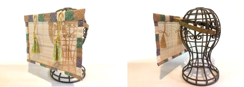 御簾フェイスシールドは、簾職人の「すだれ愛」から生まれた作品です。御簾越しの世界を手軽に体験し、歴史をタイムスリップしたかのように感じられるます。これからの新生活様式でのお茶会や婚活イベントにもオススメです。