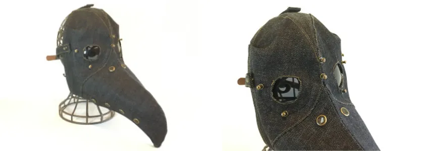 このペストマスクは、平面から立体を作ることを得意とする帽子職人だからこそ実現しました。12オンス国産デニムを使用し、使い込むほど表情が豊かになってくる作品に仕上がってます。コスプレイベントに、インテリアにオススメです。