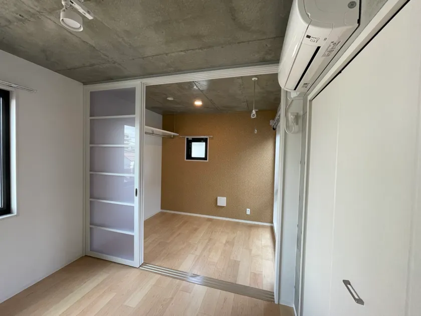 まず、すべての部屋が平均的なワンルームと比べると広めの造りになっており、部屋中央にあるパーテーションを使い部屋を仕切ることで、寝室とリビングの空間を分けることができます。