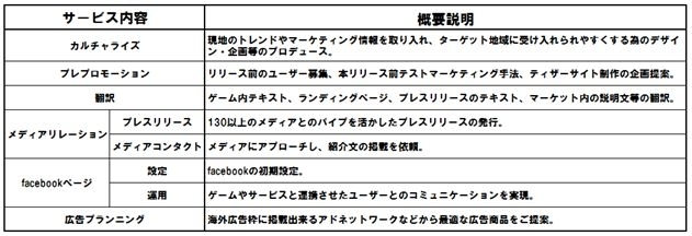 サービス対象 : スマートフォン向けアプリケーションの海外展開を図る日本国内企業