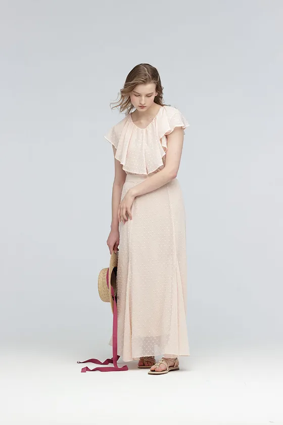 カットドビーのドットとシフォンの透け感が、程よい甘さを演出します。