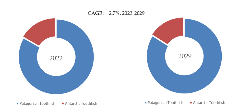 製品タイプ別では、パタゴニア産トゥースフィッシュが最大のセグメントで、83.5%のシェアを占めている、
