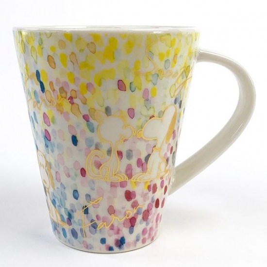 スヌーピーとファーロンがモチーフになっていてキュート♡背景には水彩タッチのドットのような柄がデザインされています。イエローやブルー、ピンクの濃淡がきれいですよね。
