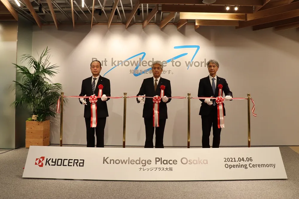 京セラ株式会社のグループ会社である京セラドキュメントソリューションズ株式会社(社長:安藤 博教)は、2021年4月6日、情報発信機能を兼ね備えた新しい形のショールーム「ナレッジプラス大阪」を本社(住所:大阪市中央区)の敷地内にオープンし、同日開所式を行いました。