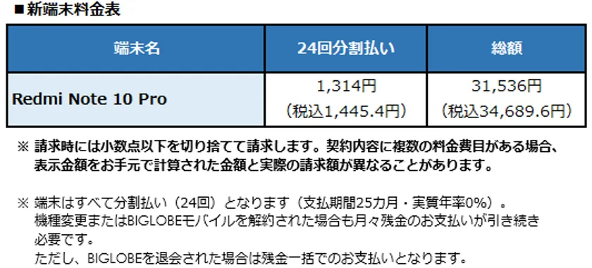 ビッグローブ株式会社(本社:東京都品川区、代表取締役社長:有泉 健、以下 BIGLOBE)は、モバイルサービス「BIGLOBEモバイル」において、Xiaomi製スマートフォン「Redmi Note 10 Pro」の提供を本日4月16日より開始します。