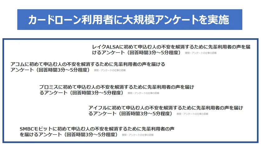 大手消費者金融カードローン利用者にアンケートを実施