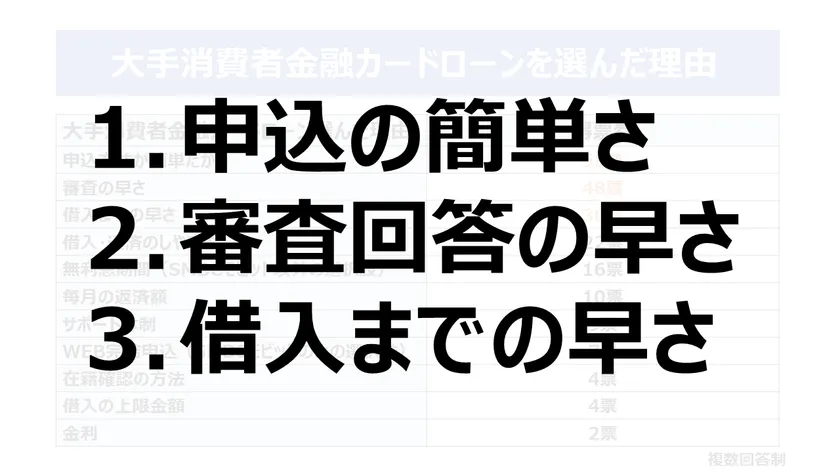 大手消費者金融カードローンを選んだ理由トップ3
