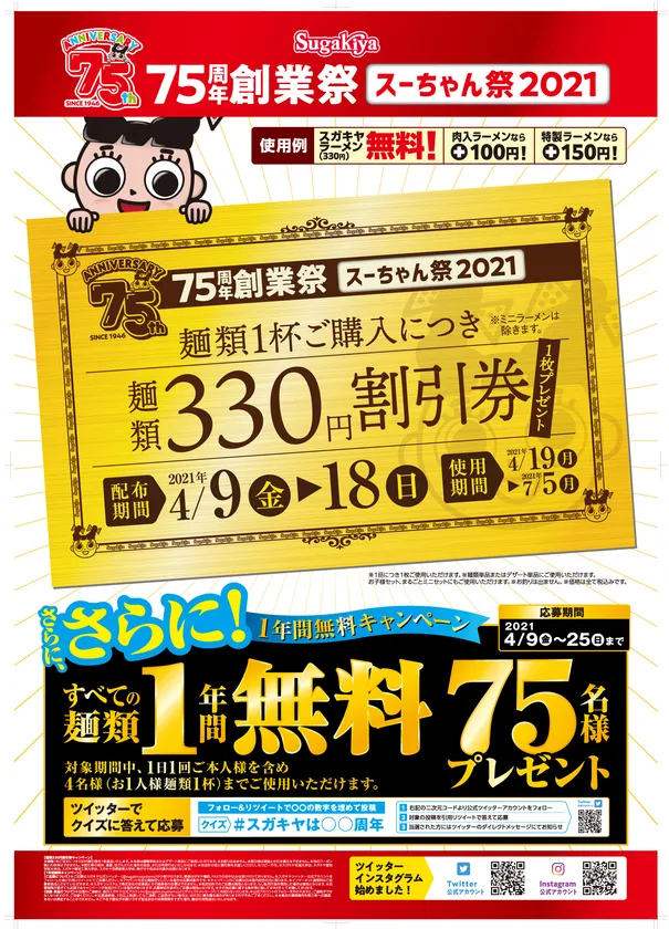 スガキヤ(252店舗):「75周年創業祭」~スーちゃん祭2021~