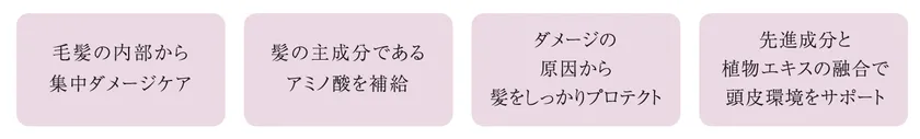 本商品は、年齢に負けない美しい髪の条件に欠かせない4つのポイントから商品設計されています。