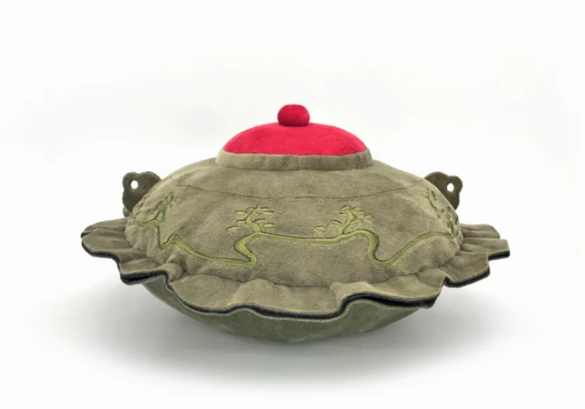 この歴史の大場面で堂々と主役級の輝きを見せた茶釜をぬいぐるみという形で表現しました。想像上でしかない平蜘蛛のレプリカを忠実にデザイン化し、しかもモフモフの触感に仕上げました。