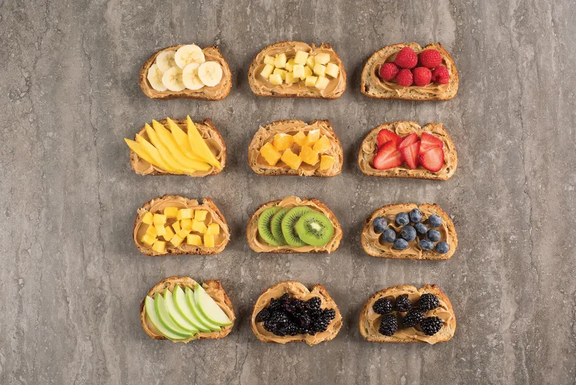 ピーナッツバターとフルーツのオープンサンドイッチ