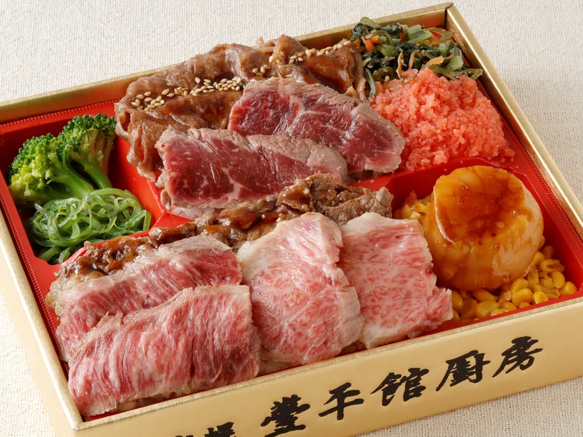 北海道生まれ・育ちの十勝和牛を使用。黒毛和種の美味しさと、天然の大粒ホタテのおいしさがつまった弁当。