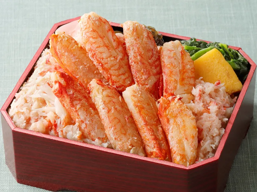 かにのむき身の旨味が道産甘エビの甘さをひきたてる弁当。
