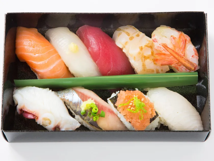 函館産の生にしん、まぐろ、いか、ソイほか松前産のしまえびなど道産の魚が楽しめる寿司。