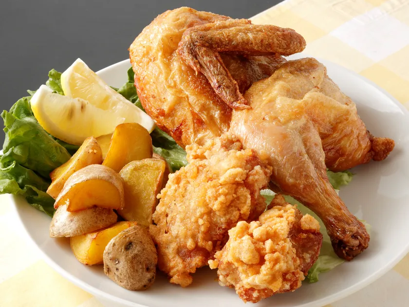 道産伊達若鶏の半身揚げ1個、道産若鶏のザンギ2個、インカのめざめフライドポテトが入ったお得なパック。